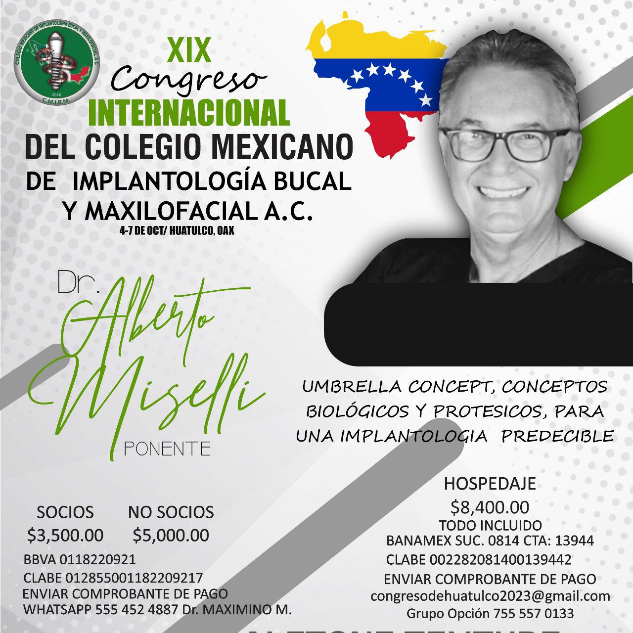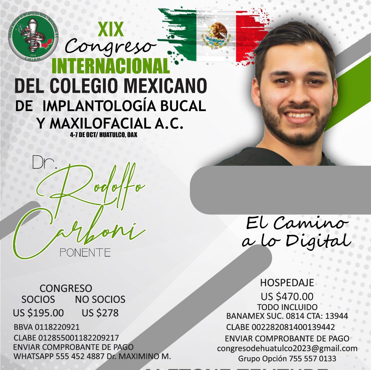NO SOCIOS – XIX CONGRESO INTERNACIONAL DEL COLEGIO MEXICANO DE IMPLANTALOGIA BUCAL Y MAXILOFACIAL A.C